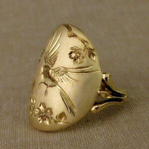 "Ethnic Style Oval Birds Flower Tree Carved Vintage Rings for Women, MARR9159