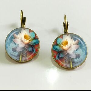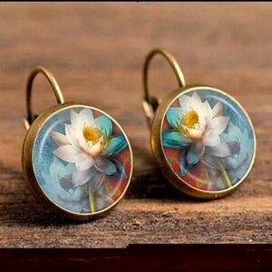 Beautiful dainty Ethnic Style Time Gemstone Earrings Lotus 3-D Pattern