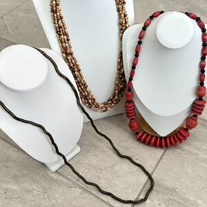 Ethnic Tribal Jewelry Bundle Lot - Necklaces & Bracelets. All pictured. 7 necklaces and two metal bracelets. Bracelets, bangle is 8" and cuff is 7". Some are beaded, sea shell, wood elephant, multi-strand, metal and more. Good ready to wear condition.