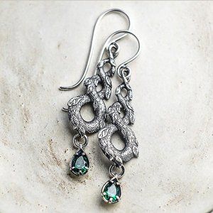 💝Ethnic Twisted Retro Silver Plated Emerald Gemstone Leaf Earrings, UNVN12484