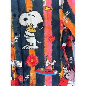 Ethnic Women's sz L SNOOPY Button Down Oversized Shirt Colorful Peanuts Cotton