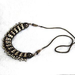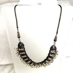 Ethnic-Inspired Black/Gold Beaded Necklace W/Intricate Detailing & Adjust. Cord