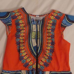 Ethnic Print Peplum Cap Sleeve Top