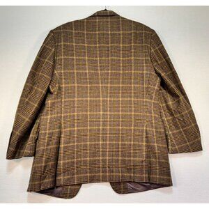 Ethomas Men's Custom Tailored Blazer Blend Size 42/43 Brown Plaid Wool Cashmere