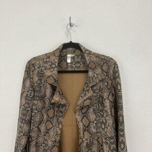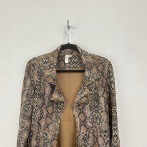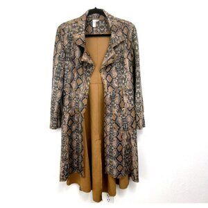 Ethyl Brown Snake Print Swing Duster Jacket Open Front Size S Pockets Bohemian