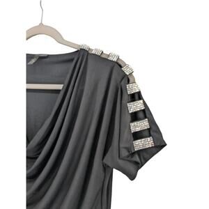 Ethyl Draped Front Top XS Black Rhinestones Cutout Sleeve Clubwear Concert Top