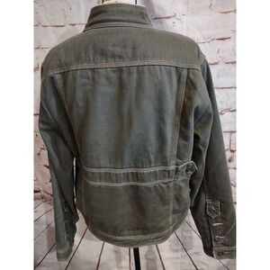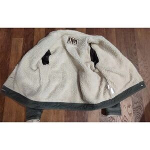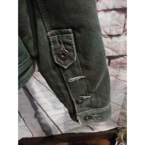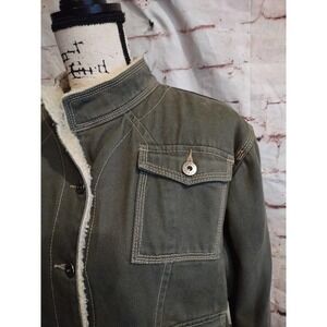 Ethyl Sherpa Lined Jean Jacket Womens Large Green Button Up Pockets Collared