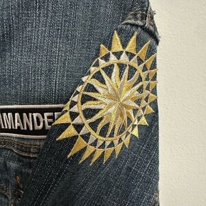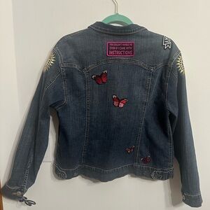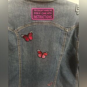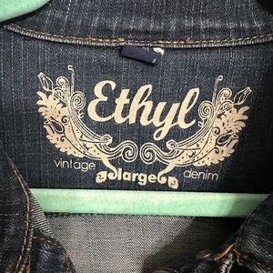Ethyl vintage denim jacket with patches size large upcycled Indie