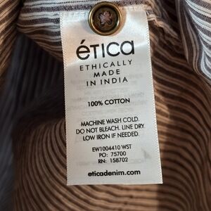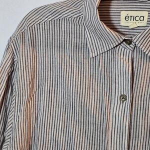 Etica 100% Cotton Striped Oversized Button Front Top Blouse Shirt, sz S