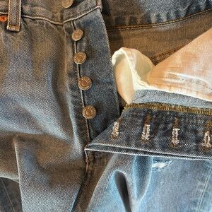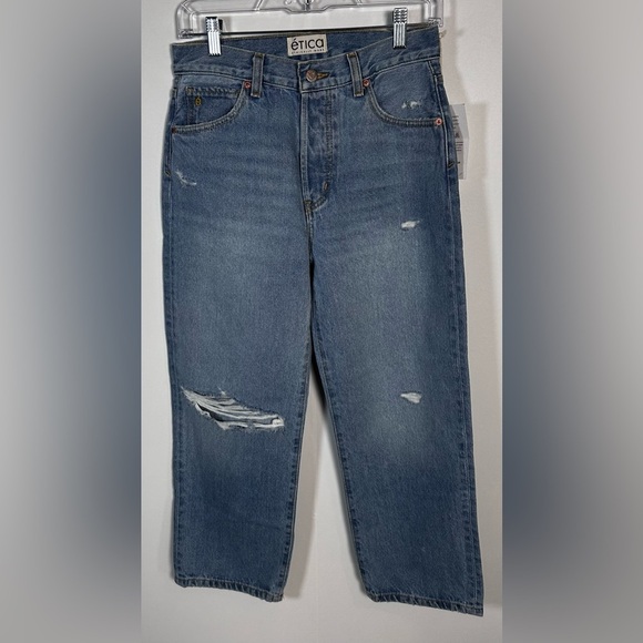 Etica Altin Loose Cropped High Rise Distressed Button Fly Jeans Size 25 NWT