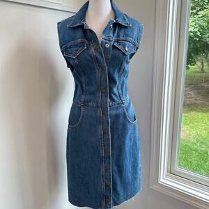 Etica Denim Jean Sleeveless Dress Small Button Western Minimalist Eco Casual