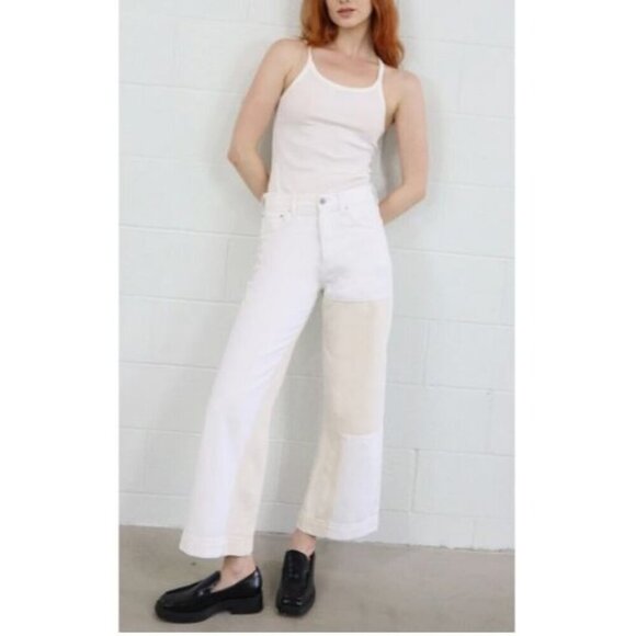 Etica Denim Women's White EW148111R Wide-Leg Jeans Devon Crop Rework Size 28