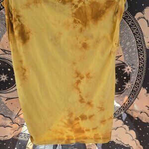 Tie Dye Self-Tie Organic Cotton T-Shirt X-Small. Stylish tie-dye muscle tee by Etica. Features a bold yellow and brown pattern. Perfect for casual wear.