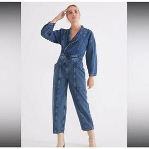 Etica Liv Asymmetrical Denim Jumpsuit Womens S Utility Deep VNeck Ethically Made