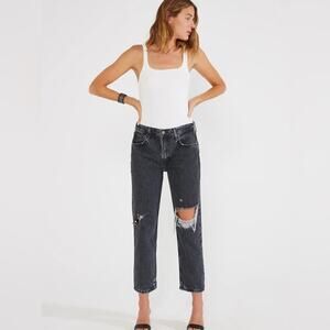 Etica Rhea Midrise Straight Crop Jean Smokey Mountain NWT Black Distressed 27