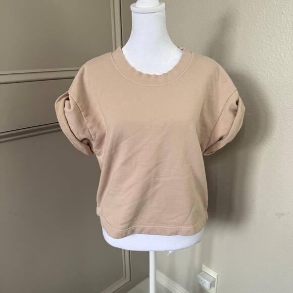 Etica Rhett Sweat In Sand Organic Cotton Short Rolled Sleeve Pullover S