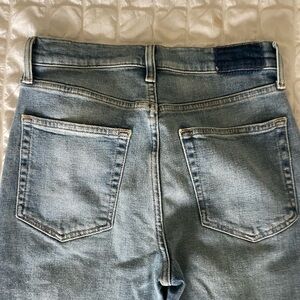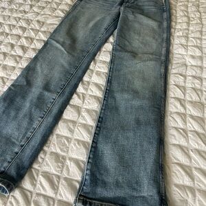 Chic high rise jeans in light blue. Perfect for casual wear. Comfortable and stylish.