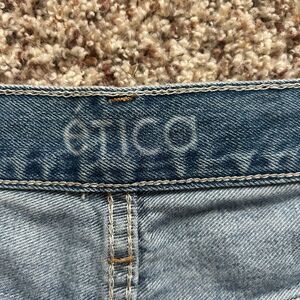 Etica Women's Distressed Ripped Grunge Blue Flare Jeans Button Up Size 29