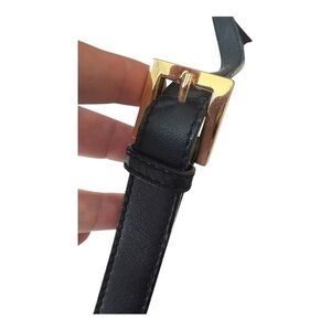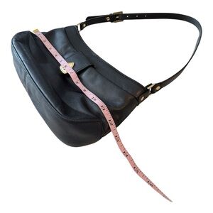 Elegant black leather shoulder bag with gold-tone hardware. Perfect for any occasion. Classic buttery soft Genuine Leather
