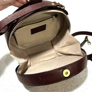 Size: Round/box style is about 9" diameter x 3.5" deep front to back / top loop handle drops the bag 4" / shoulder strap drops the bag about 21".