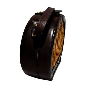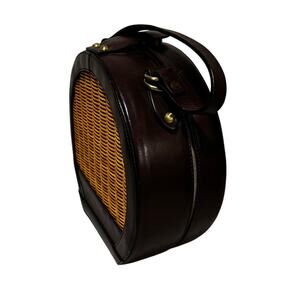 RARE Etienne Aigner 1970's 2-way bag works as a satchel or crossbody - done in wicker & dark reddish-brown leather. Fantastic as a summertime casual purse - this bag is clearly hallmarked and includes a large central compartment, natural rattan and brass hardware. Snaps closed - removable shoulder strap. In good overall condition with some scuffs on the leather (see pics) but no significant damage or flaws - so cute and from a desirable / collectible brand.