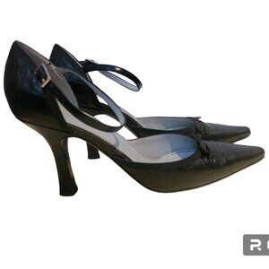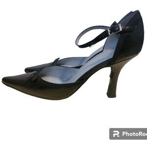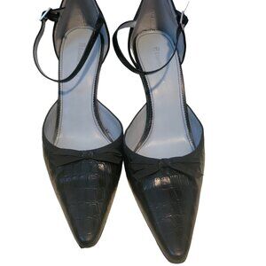 Etienne Aigner Adam Black Crocodile Point Toe D'Orsay Ankle Strap Pump Heels