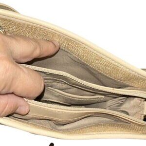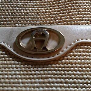 Etienne Aigner Beige & Cream Crossbody Bag With Adjustable Strap Woven Jute Logo