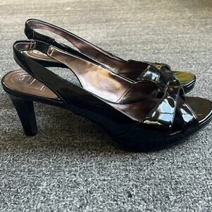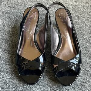 Etienne Aigner Black Glossy Sling Back Open Toed Heels Sz 8