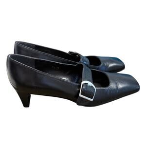 Etienne Aigner Black Leather Mary Jane Heels – Size 7.5M – Made in Spain