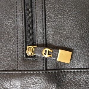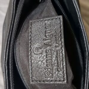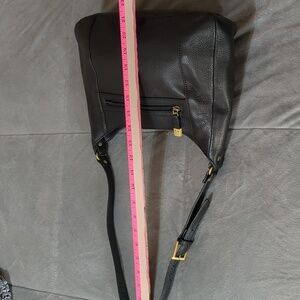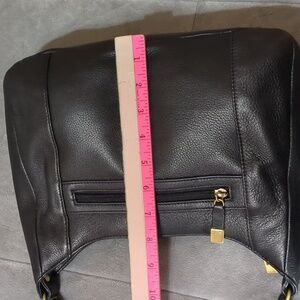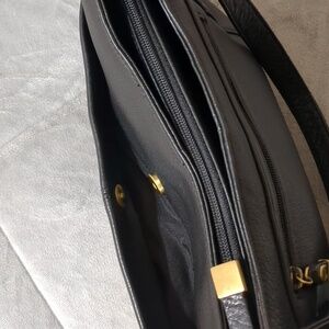 Beautiful black leather shoulder bag (it had 5 bags inside and 2 bags outside). Used only ones, in excellent condition. Look at the pics for measurements and more details. Any questions let me know please.