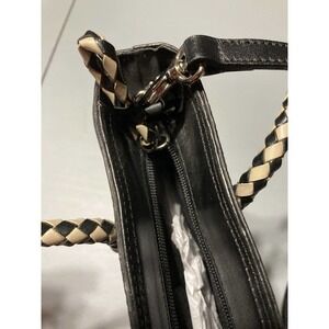 Etienne Aigner Black Leather Shoulder Bag W/ Woven Handles.