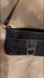 Chic black shoulder bag by Etienne Aigner. Features silver buckle detail. Ideal for versatile styling. Cotton polly logo print and faux leather trim . Lots of pockets . 14x6x4