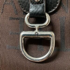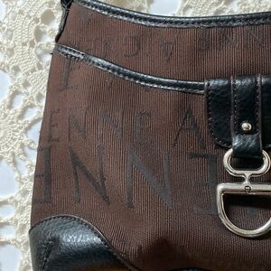 Etienne Aigner Brown & Black Signature Logo Fabric Shoulder Handbag Purse (P187)