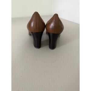 Etienne Aigner Brown Tan Leather Square Toe Bow Low Block Heels Pumps 8 1/2