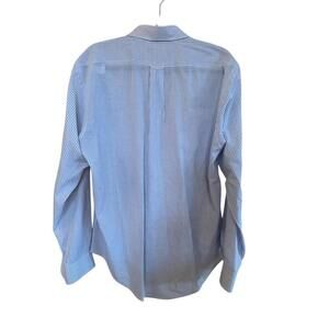 This Etienne Aigner button-down shirt in men's size 16 features a classic striped pattern in white and gray, making it suitable for various occasions such as weddings, casual outings, and workwear. With a collared neckline and long sleeves, this shirt offers a regular fit and is made from a blend of polyester and cotton for easy care with machine washable instructions. The button-up style and logo accents add a touch of sophistication to this timeless piece that can be worn in all seasons.