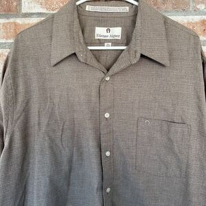 Mens size 17.5 34/35 button down Etienne Aigner shirt. Long sleeve, textured brown color. Excellent condition!