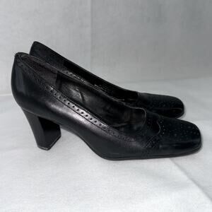 Etienne Aigner Camelot Women’s Chunky Heel Square Toe Pumps size 6.5 Heels Black