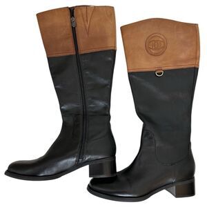 Etienne Aigner Chastity Leather Riding Boots Black Brown Size 7.5