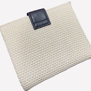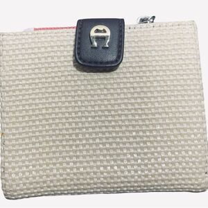 Elegant woven design. Cream body with black accent. Iconic Etienne Aigner logo.