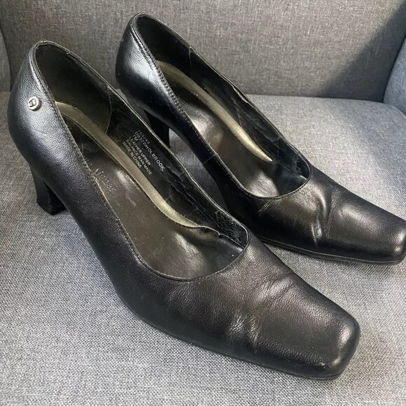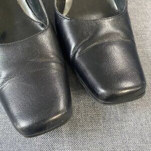 Classic Etienne Aigner Deanna Black Leather Square Toe Heel Pump Shoe. 2". Size 7M. Very nice pre-owned condition. High quality shoes with lots of wear left. All items come from a smoke free, pet free home.