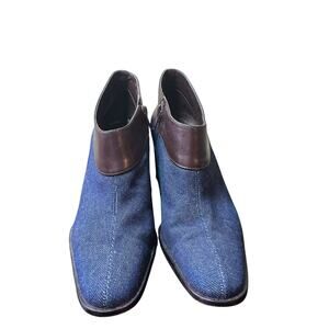 Etienne Aigner Donnie Denim Leather Trim Pointed Toe Stack Heel Bootie