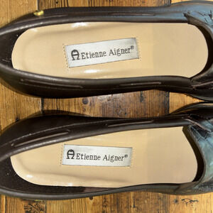 Etienne Aigner Gotham Brown Embossed Penny Loafer Womens Shoes Flats Tassel 8.5M