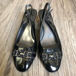 Etienne Aigner "Jolene" Black Patent Leather Slingback Pump Heel Size 8M Heel: 2 1/2"