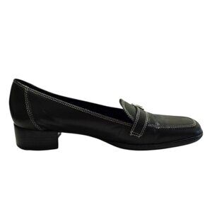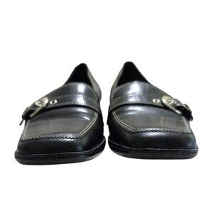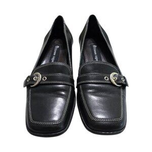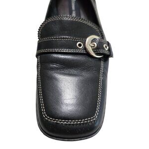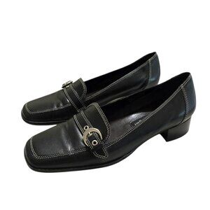 Etienne Aigner Jules Black Leather Square Toe Buckle Block Heel Loafers Sz 7.5