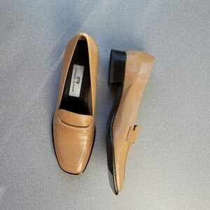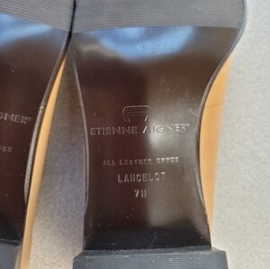 Etienne Aigner Lancelot" leather flat loafer, 1" block heel, camel in color, sleek & sophisticated, camel in color, size 7N, previously owned, like new