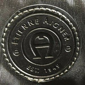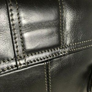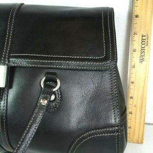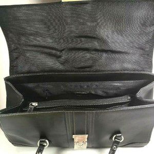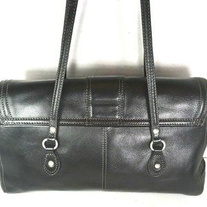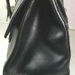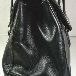 This is for a Large Black Structured Leather Shoulder Bag, with flap buckle closure, and silver tone hardware, ETIENNE AIGNER!