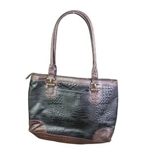 Etienne Aigner large croc embossed leather shoulder bag tote classic