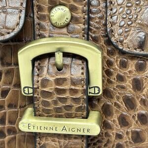 Etienne Aigner Leather Shoulder Bag Brown Croc Embossed Double Handles Pristine