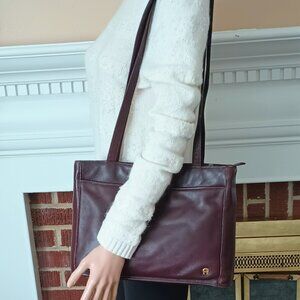Etienne Aigner Leather Shoulder Bag Classic Vintage Oxblood Logo Purse