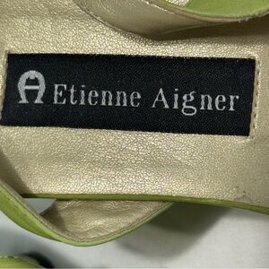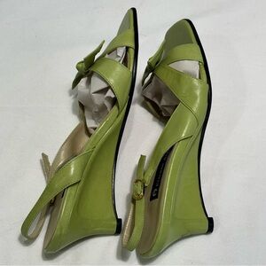 Etienne Aigner Lime Green Wedge Heel Sandals Size 7 Vintage